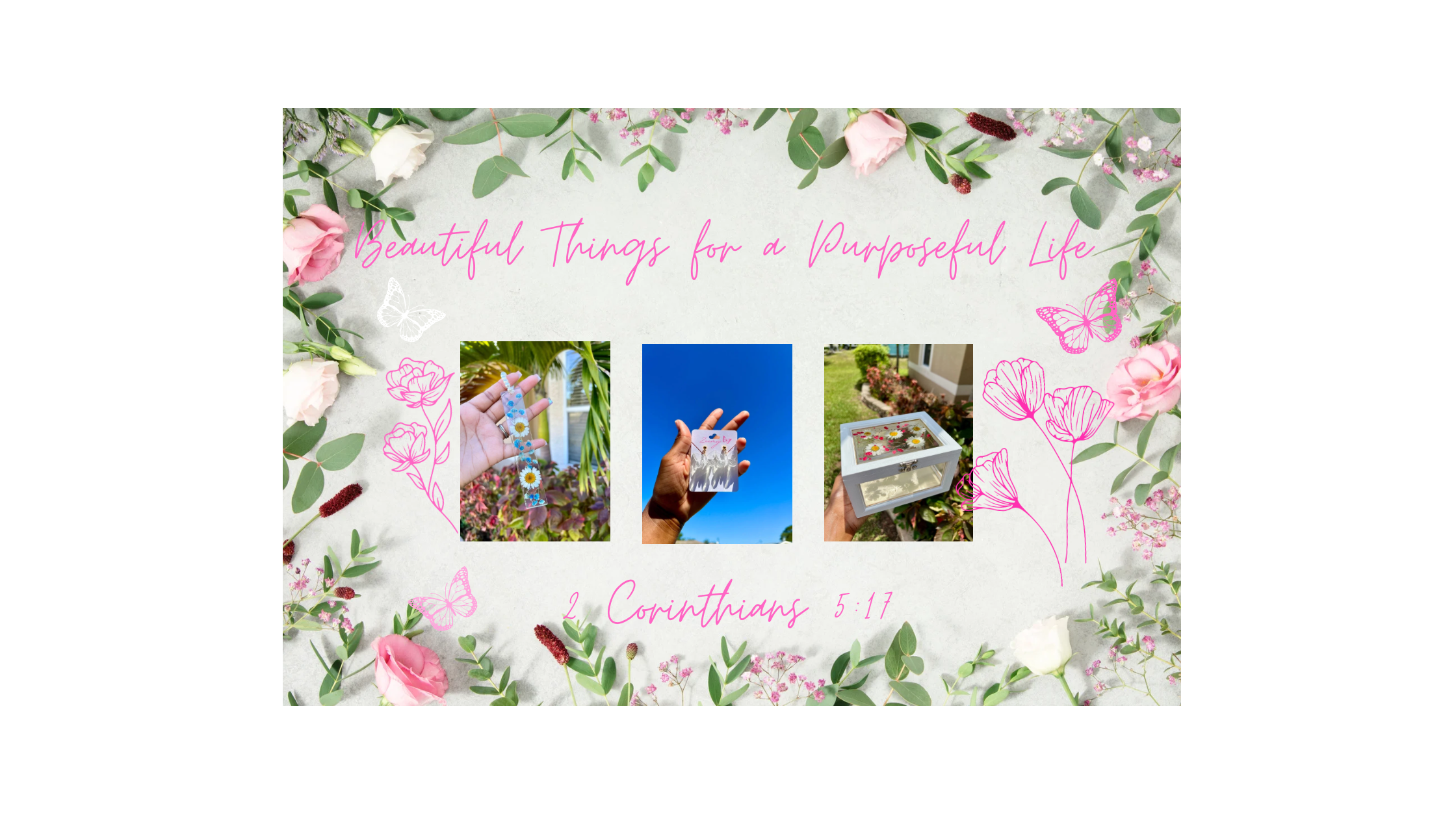 Rooted in grace and inspired by 2 Corinthians 5:17, our vision is to help women walk in the beauty of new beginnings. Born out of personal college struggles with procrastination, health battles, and financial stress, this brand was created to offer more than just pretty things—it’s a reminder that transformation is possible. Through floral and butterfly-inspired accessories, faith-filled stationery, and digital planning tools, we aim to equip and encourage women to steward their time, health, and resources with purpose, peace, and the joy of becoming new in Christ. 🦋
